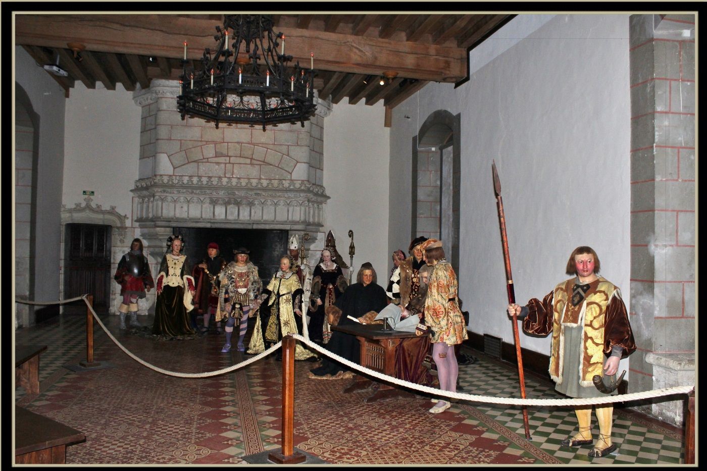 La scène du mariage a été reconstituée pour la visite par le sculpteur Daniel Druet avec des mannequins de cire et un son et lumière